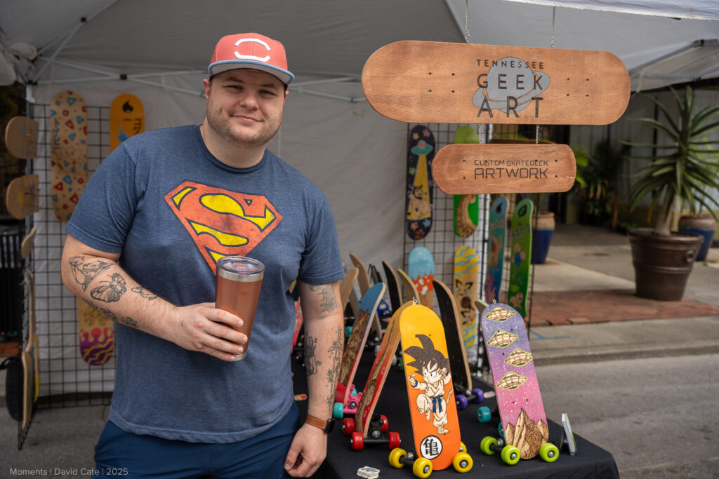Vendors lined the sidewalks with everything from skateboard decks to vintage film portraits, while kids crowded face-painting booths. Market Street hummed with the voices of Kingsport’s international community. At the South American table, a woman named Kapoola stood radiant in burnt orange, her smile pulling everyone toward her.